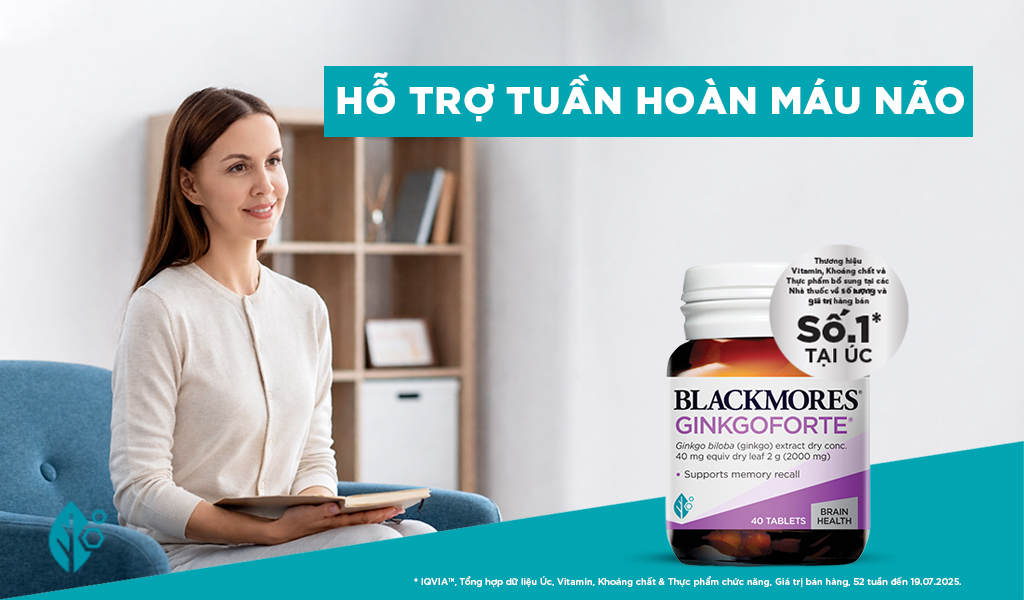 Blackmores Ginkgo Forte với 40mg chiết xuất từ bạch quả chuẩn hóa, chứa 10.7mg ginkgo flavonglycosides và 2.7mg ginkgolides và bilbobalide, hỗ trợ tuần hoàn máu não