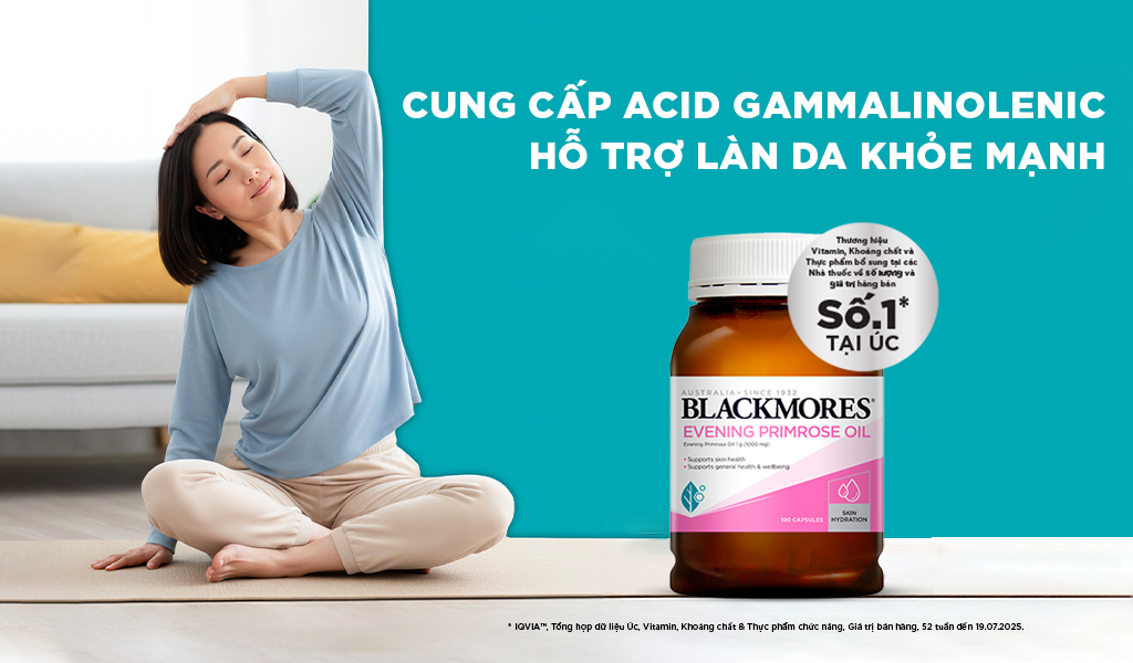 Dầu hoa anh thảo (hay Evening Primrose Oil - EPO) được chiết xuất từ hạt hoa anh thảo (Oenothera biennis), giàu gamma - linolenic acid (GLA) - một acid béo omega -6 tham gia vào quá trình tổng hợp, phòng thích, tái hấp thu và liên kết các chất dẫn truyền thần kinh, cũng như có vai trò trong cấu trúc và chức năng của não bộ. [1] [2] Các bằng chứng khoa học về lợi ích của EPO đối với các triệu chứng tiền kinh nguyệt và giai đoạn mãn kinh Blackmores Evening Primrose Oil cung cấp 100mg GLA chiết xuất từ tinh dầu hoa anh thảo, giúp bổ sung omega-6 cho cơ thể, hỗ trợ làn da khỏe mạnh, dưỡng ẩm và giảm khô da. Cách dùng: 2 viên x 1-2 lần mỗi ngày hoặc theo chỉ định của chuyên gia y tế.2. Tinh dầu hoa anh thảo hỗ trợ tâm lý cân bằng